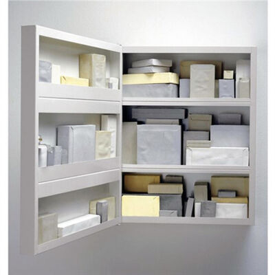 She did this piece named “Cabinet”, that resembles a medicine cabinet, stripped down to its simple forms.